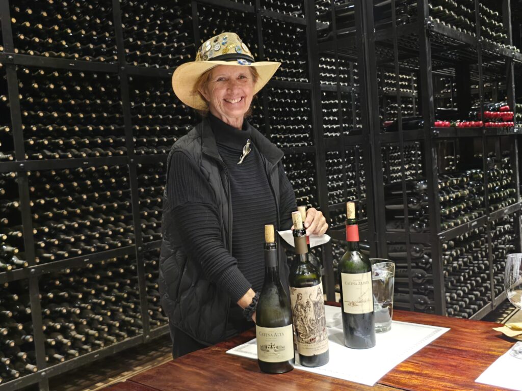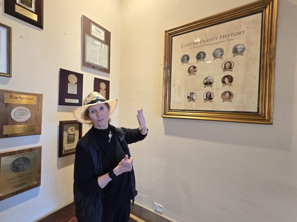 Quem nos recebe na adega para nos guiar na visita é Carolina Fuller, uma das figuras mais reconhecíveis do sector, famosa já no meio pelo seu chapéu decorado com pins. Hospitaleira, bem humorada e muito profissional é, desde maio de 2022, responsável de Enoturismo (Turismo e Hospitalidade) de Catena Zapata. Formada pela Escola Argentina de Sommeliers (EAS), trabalhou já em enoturismos de algumas das mais reconhecidas adegas de Mendoza (como a Bodega Tapiz e a Bodegas Salentein) e é detentora de um aprofundado conhecimento técnico de vinhos, que, aliado a uma visão estratégica de turismo, integra na perfeição storytelling, vinhos, terroir, arquitetura e hospitalidade.