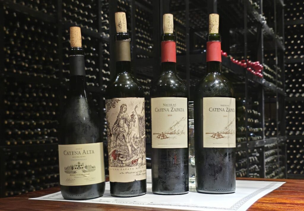 Já os Nicolás Catena Zapata tintos 2020 e 2005 foram provados lado a lado para evidenciar a capacidade de longevidade da adega. O 2020 mostra-se ainda jovem e vibrante, com frutas escuras intensas, taninos firmes mas polidos, acidez equilibrada e uma intensidade aromática que aponta para grande potencial de guarda. É um vinho energético, em fase de construção, que revela a elegância típica do corte Malbec-Cabernet Sauvignon da Catena Zapata.