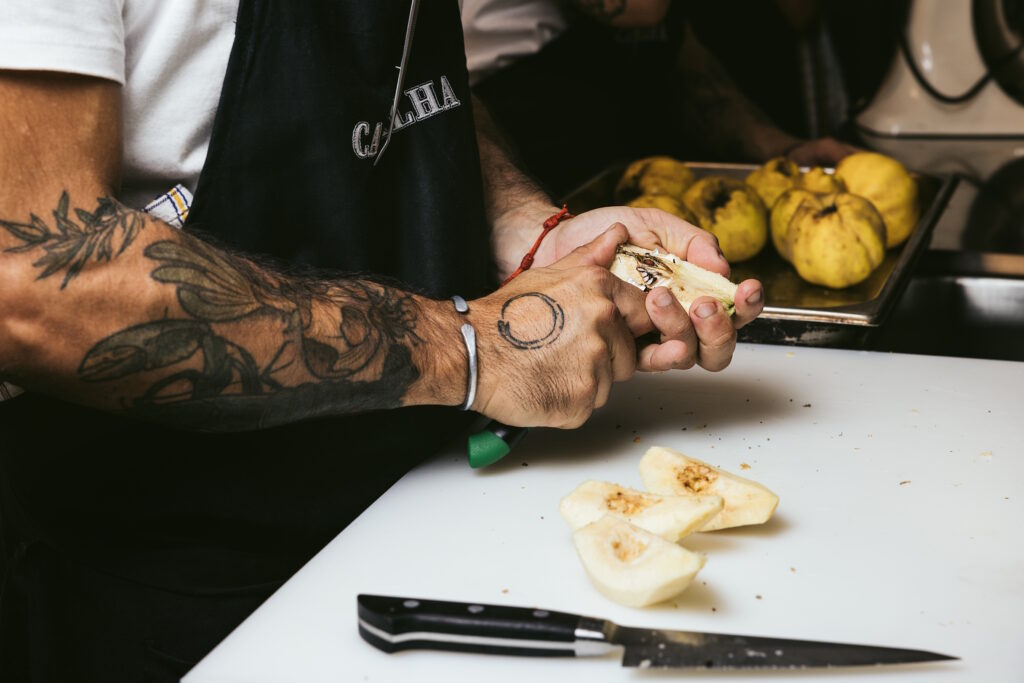 Há também pratos que já começam a ganhar estatuto de assinatura. O carabineiro com ovo frito, sobrasada e cogumelos é quase um manifesto, mar e terra no mesmo prato, num equilíbrio improvável que funciona. A lula de toneira com manteiga de cabra, um clássico associado a João Rodrigues, é outro exemplo dessa elegância descomplicada (amo, é mesmo um dos meus favoritos!). Pelo meio, surgem ainda apontamentos profundamente portugueses, como os pastéis de bacalhau fritos na hora, a salada de batata com anchovas ou até um simples bitoque, servido sem pretensões mas com rigor.